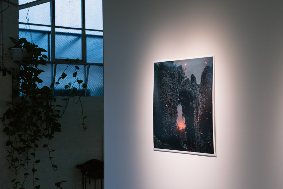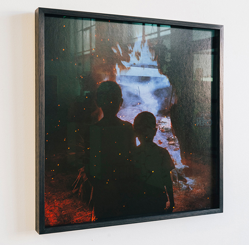 At first, there is fire. Not as an explosion, not as a spectacle, but as a presence that lingers. A column of incandescent particles rises from the ground, illuminating the night like a wound that refuses to close. Two figures run, their bodies caught between fear and familiarity. Elsewhere, children stand still, watching the earth burn as if it were part of the landscape, something known, inherited, almost ordinary. In The Mark of a Terrible Sun, Ioanna does not photograph catastrophe as an event. She photographs what remains once catastrophe has already passed through lives, bodies and memory.
